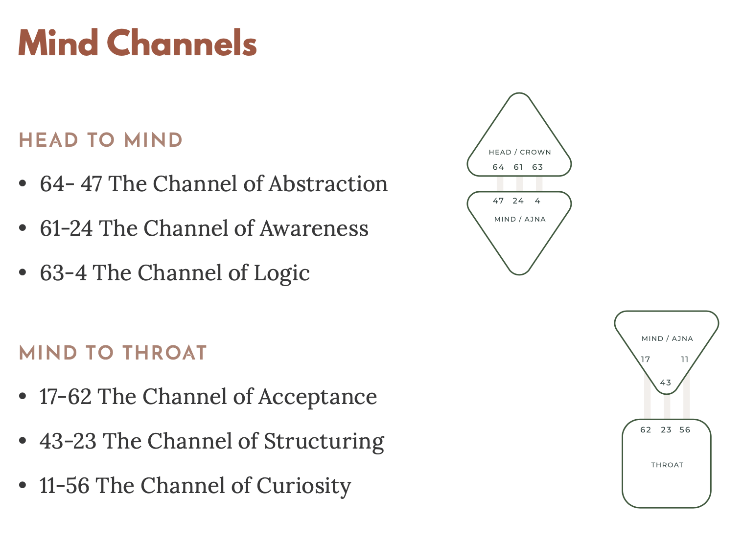 Look at your chart and see which channels you have coming out of your Ajna center. Copy & paste your channels in your personal notes.