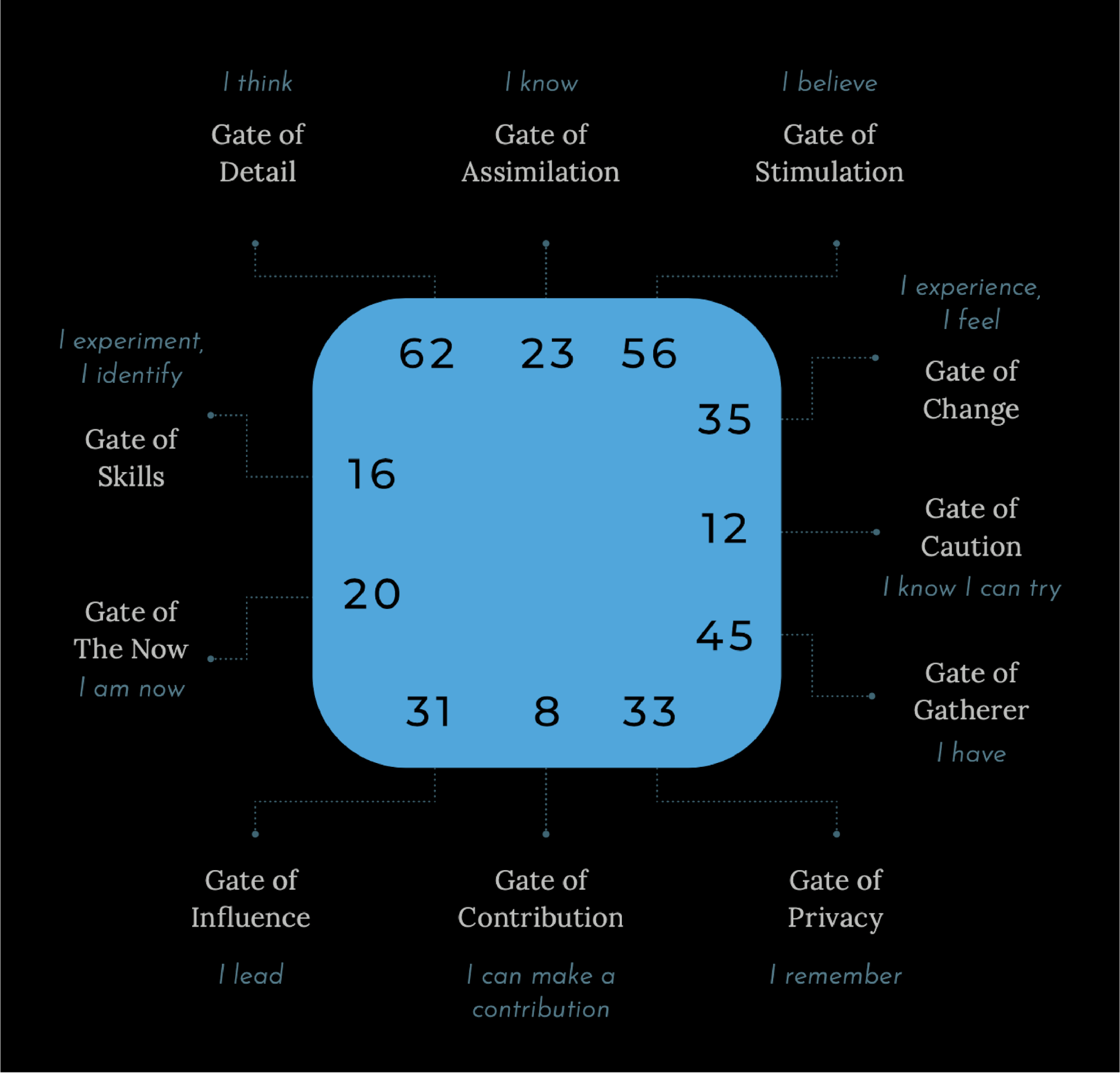 Look at your chart and see which gates you have filled in. Copy and paste into a note for yourself, which ones you have below.